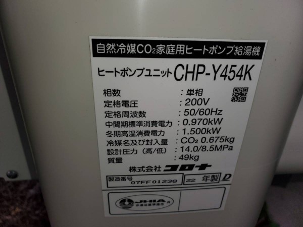 いなべ市北勢町飯倉 コロナ自然冷媒CO2家庭用ヒートポンプ給湯機 貯湯ユニットCTU-37AY5K,ヒートポンプユニットCHO-Y454K エコキュート交換工事|三重県のエコキュート専門交換工事店|三重エコキュート交換ショップ補助金対応可能