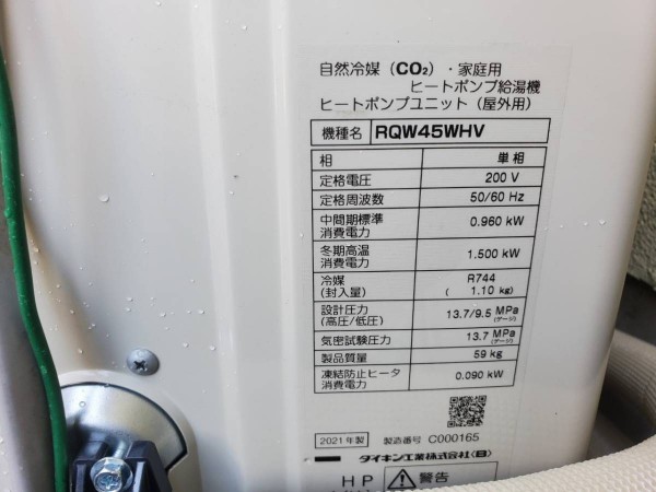 伊勢市柏町 ダイキン自然冷媒CO2・家庭用ヒートポンプ給湯機 ヒートポンプユニットRQW45WHV エコキュート交換工事|三重県のエコキュート専門交換工事店|三重エコキュート交換ショップ補助金対応可能