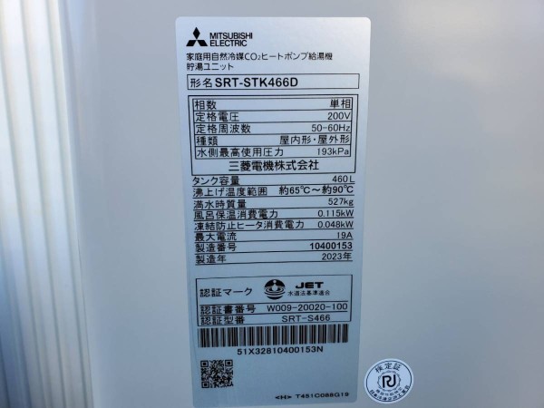 鈴鹿市徳居町 三菱電機自然冷媒CO2ヒートポンプ給湯機 貯湯ユニットSRT-STK466D エコキュート交換工事|三重県のエコキュート専門交換工事店|三重エコキュート交換ショップ補助金対応可能