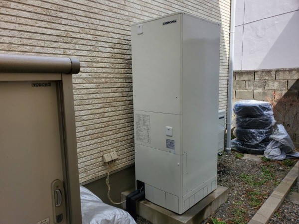いなべ市北勢町飯倉 コロナ自然冷媒CO2家庭用ヒートポンプ給湯機 貯湯ユニットCTU-37AY5K、ヒートポンプユニットCHP-Y454K エコキュート交換工事