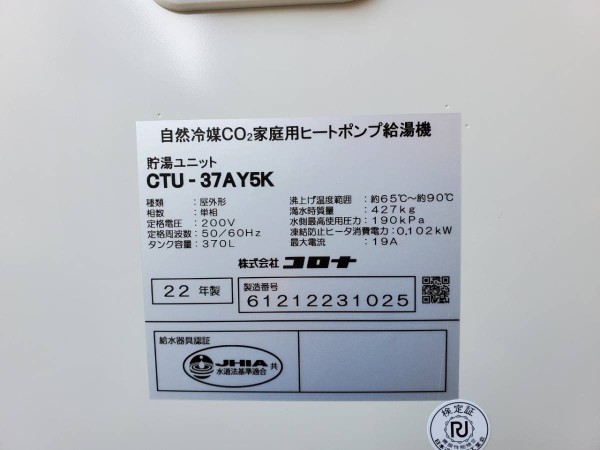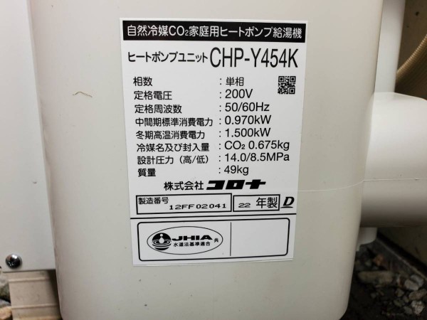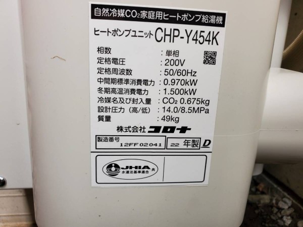 伊勢市柏町 コロナ自然冷媒CO2家庭用ヒートポンプ給湯機 貯湯ユニットCTU-37AY5K、ヒートポンプユニットCHP-Y454K エコキュート交換工事|三重県のエコキュート専門交換工事店|三重エコキュート交換ショップ補助金対応可能