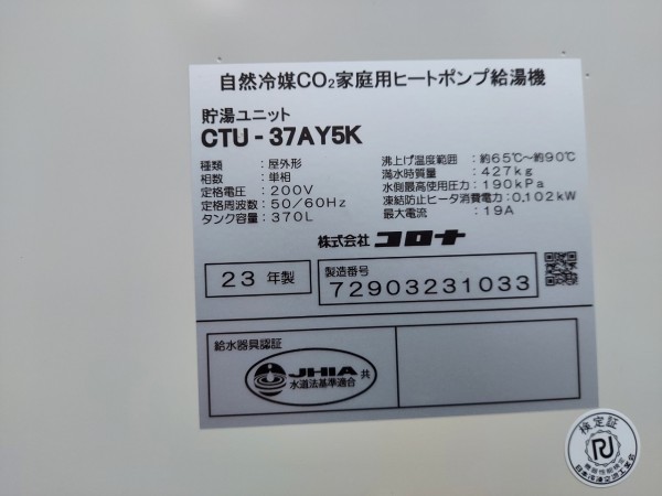 志摩市浜島町南張 コロナ自然冷媒CO2家庭用ヒートポンプ給湯機貯湯ユニットCTU-37AY5K エコキュート交換工事