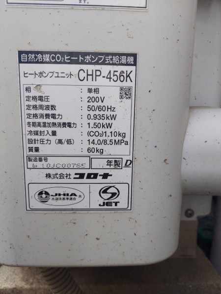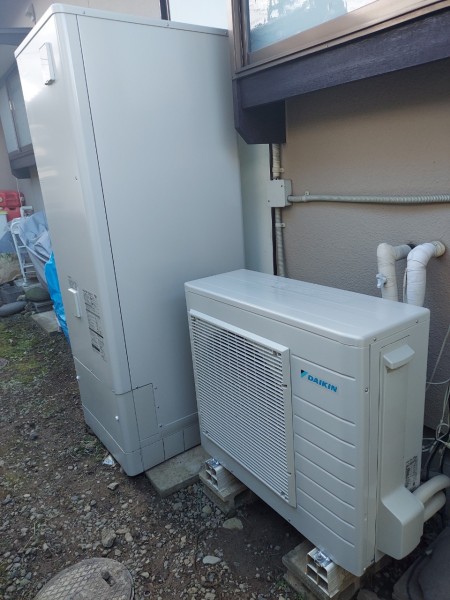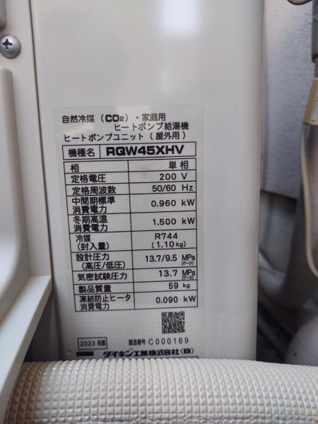 鈴鹿市徳居町 コロナエコキュートCHP-456K→ダイキン自然冷媒CO2家庭用ヒートポンプ給湯機ヒートポンプユニットRGW45XHV エコキュート交換工事