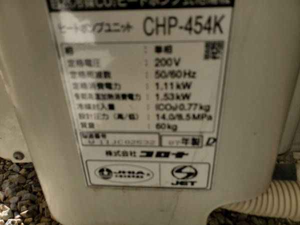 鈴鹿市徳居町 コロナ自然冷媒CO2家庭用ヒートポンプ給湯機ヒートポンプユニットCHP-454K エコキュート交換工事|三重県のエコキュート専門交換工事店|三重エコキュート交換ショップ補助金対応可能