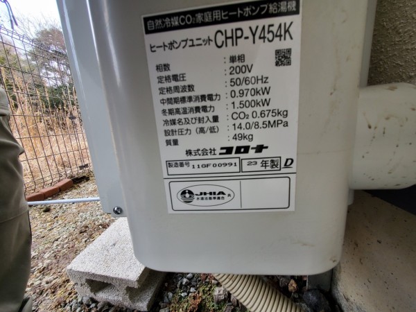 鈴鹿市柳町 コロナ自然冷媒CO2家庭用ヒートポンプ給湯機ヒートポンプユニットCHP-Y454K エコキュート交換工事|三重県のエコキュート専門交換工事店|三重エコキュート交換ショップ補助金対応可能