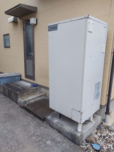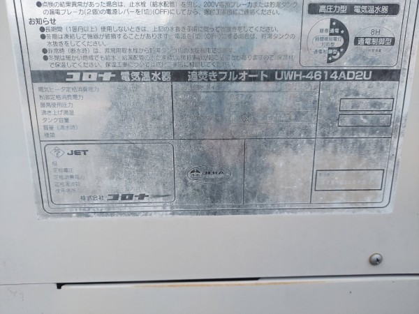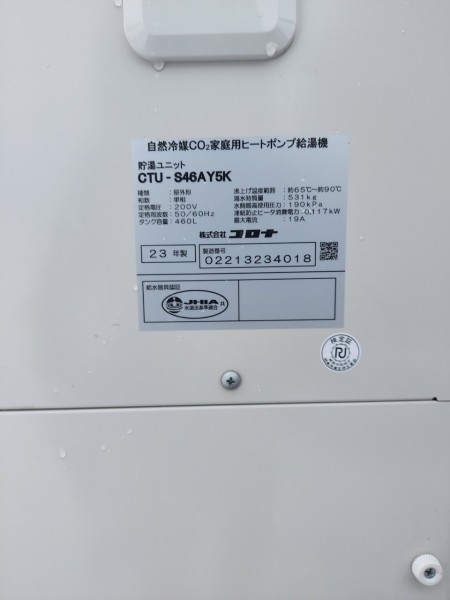 志摩市浜島町南張 コロナ電気温水器UWH-4614AD2U→コロナ自然冷媒CO2家庭用ヒートポンプ給湯機貯湯ユニットCTU-S46AY5K エコキュート交換工事