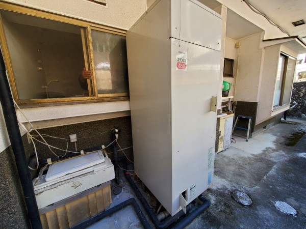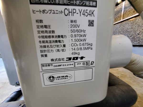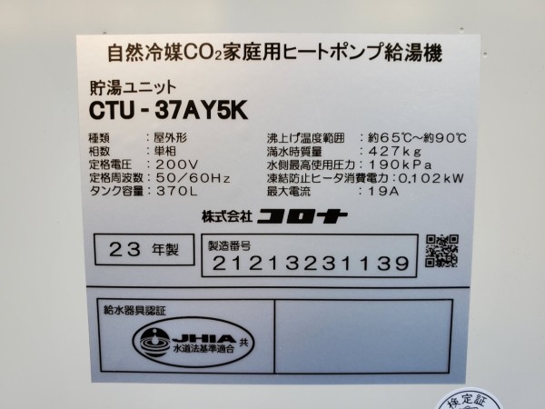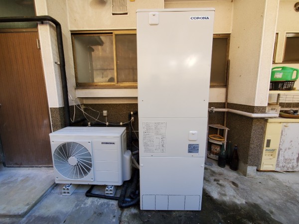 伊勢市通町 コロナ自然冷媒CO2家庭用ヒートポンプ給湯機ヒートポンプユニットCHP-Y454K、貯湯ユニットCTU-37AY5K エコキュート交換工事