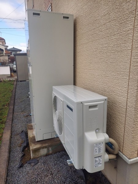 いなべ市員弁町畑新田 東芝エコキュート→コロナ自然冷媒CO2家庭用ヒートポンプ給湯機ヒートポンプユニットCHP-Y454K、貯湯ユニットCTU-37AY5K エコキュート交換工事