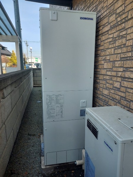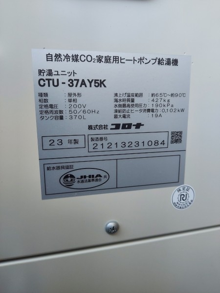 いなべ市北勢町飯倉 コロナ自然冷媒CO2家庭用ヒートポンプ給湯機貯湯ユニットCTU-37AY5K エコキュート交換工事