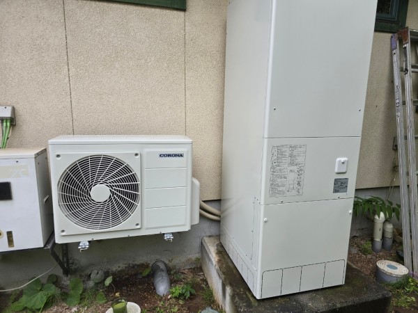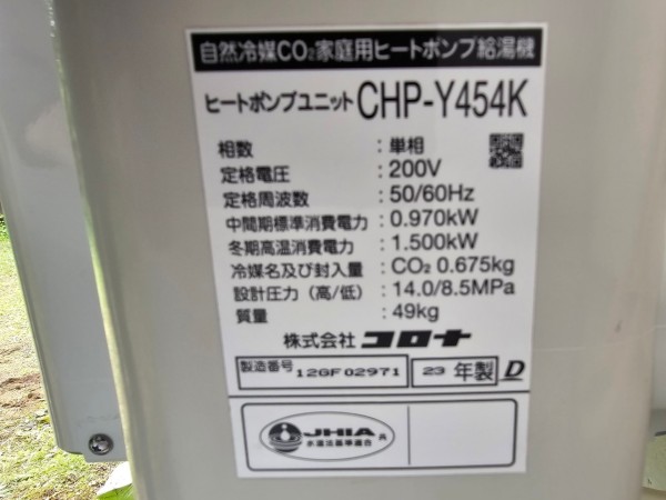 熊野市遊木町 コロナ自然冷媒CO2家庭用ヒートポンプ給湯機ヒートポンプユニットCHP-Y454K エコキュート交換工事