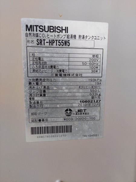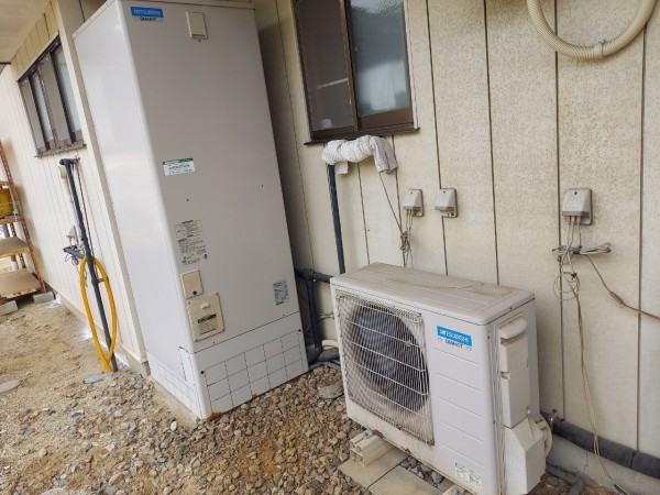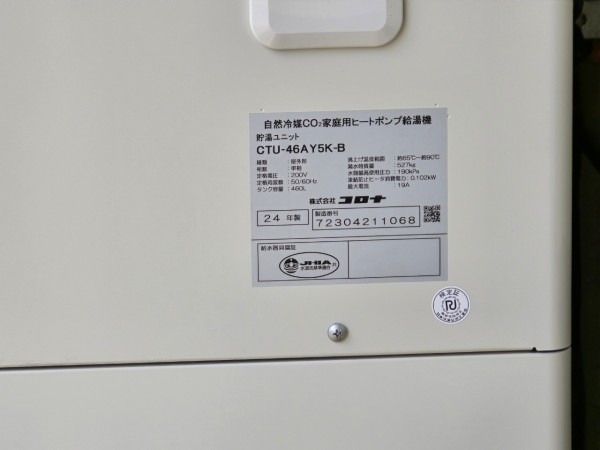 志摩市大王町畔名 コロナ自然冷媒CO2家庭用ヒートポンプ給湯機貯湯ユニットCTU-46AY5K-B エコキュート交換工事