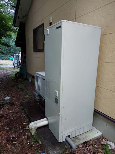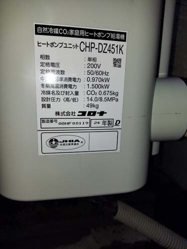 伊勢市通町 コロナエコキュート→コロナ自然冷媒CO2家庭用ヒートポンプ給湯機 ヒートポンプユニットCHP-DZ451K エコキュート交換工事