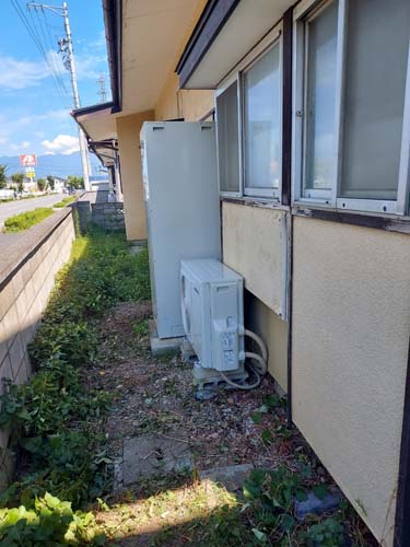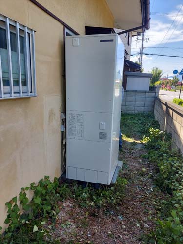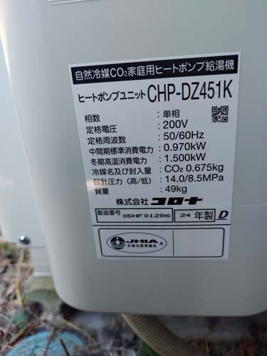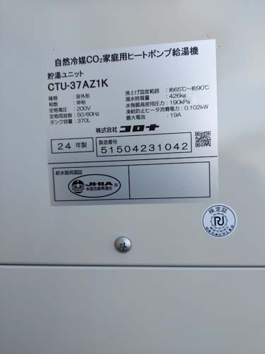 伊勢市柏町 コロナ自然冷媒CO2家庭用ヒートポンプ給湯機ヒートポンプユニットCTU-37AZ1K、ヒートポンプユニットCHP-DZ451K エコキュート交換工事