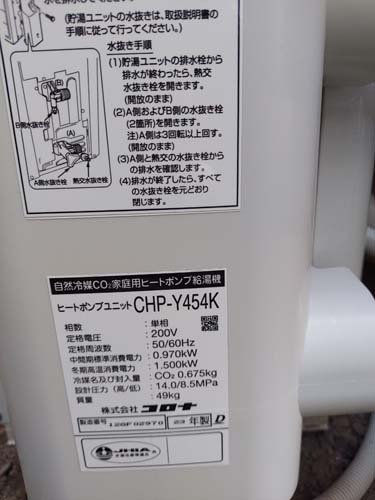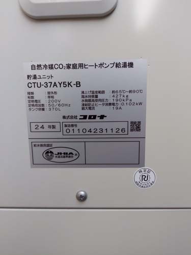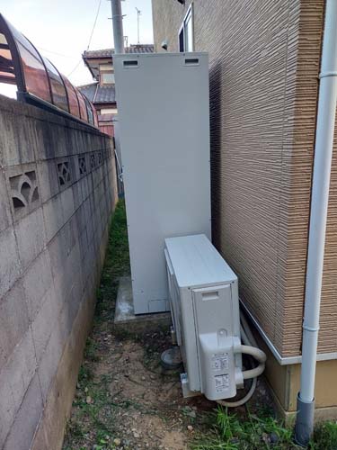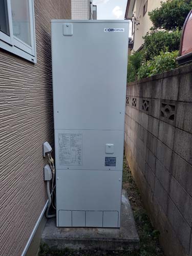 いなべ市大安町平塚 コロナ自然冷媒CO2家庭用ヒートポンプ給湯機 貯湯ユニットCTU-37AY5K-B、ヒートポンプユニットCHP-Y454K エコキュート交換工事