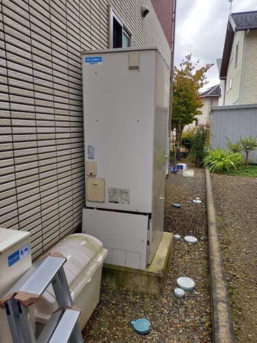 桑名市桑名 三菱電機エコキュート→コロナ自然冷媒CO2家庭用ヒートポンプ給湯機 ヒートポンプユニットCHP-DZ451K エコキュート交換工事