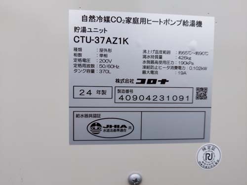 志摩市阿児町鵜方 コロナ自然冷媒CO2家庭用ヒートポンプ給湯機 貯湯ユニットCTU-37AZ1K エコキュート交換工事