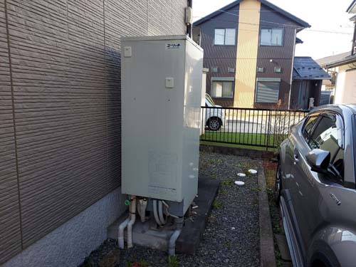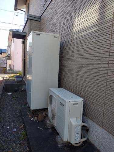 トップページ > 工事事例一覧 > 尾鷲市天満浦 コロナ自然冷媒CO2家庭用ヒートポンプ給湯機 ヒートポンプユニットCHP-DZ451K エコキュート交換工事