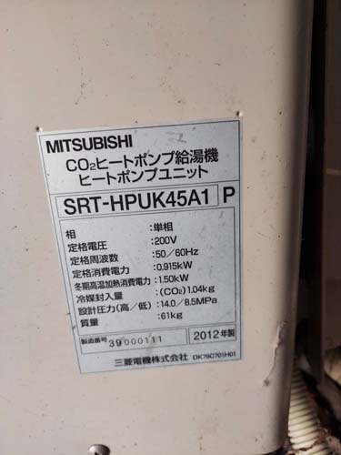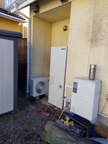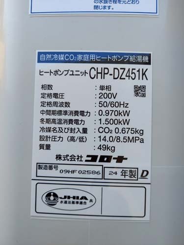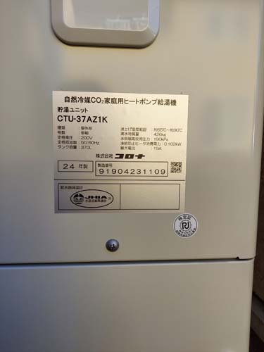 桑名市赤須賀 三菱電機エコキュートSRT-HPUK45A1→コロナ自然冷媒CO2家庭用ヒートポンプ給湯機貯湯ユニットCTU-37AZ1K、ヒートポンプユニットCHP-DZ451K エコキュート交換工事