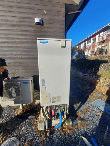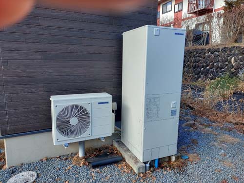 亀山市羽若町 三菱電機エコキュート→コロナ自然冷媒CO2家庭用ヒートポンプ給湯機貯湯ユニットCTU-37AZ1K、ヒートポンプユニットCHP-DZ451K エコキュート交換工事