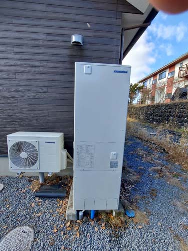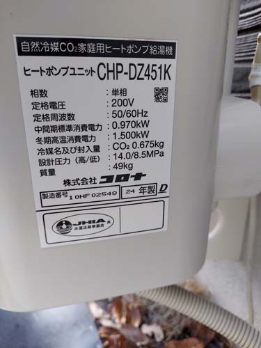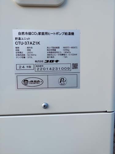 亀山市羽若町 コロナ自然冷媒CO2家庭用ヒートポンプ給湯機貯湯ユニットCTU-37AZ1K、ヒートポンプユニットCHP-DZ451K エコキュート交換工事