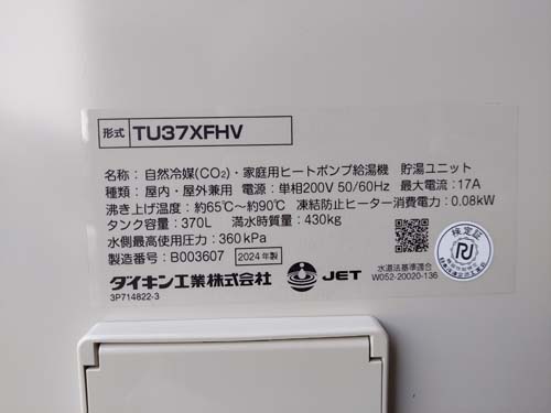 尾鷲市天満浦 ダイキン工業自然冷媒CO2家庭用ヒートポンプ給湯機貯湯ユニットTU37XFHV、ヒートポンプユニットRQW45XHV エコキュート交換工事