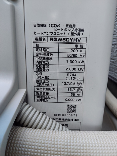 いなべ市大安町平塚 ダイキン自然冷媒CO2家庭用ヒートポンプユニットRQW60YHV エコキュート交換工事